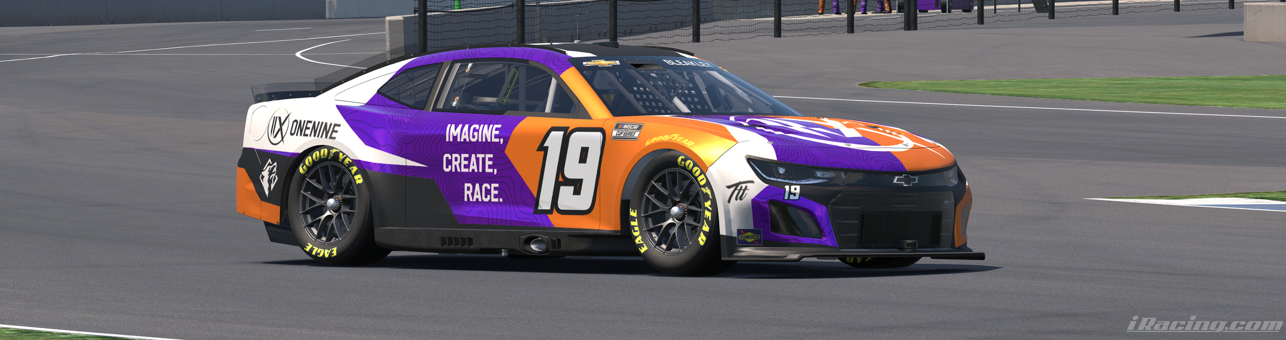 Presenting our new team livery moving forward start at this coming weekends iRacing Brickyard 400. The purple and orange has stayed but with a bit more style.